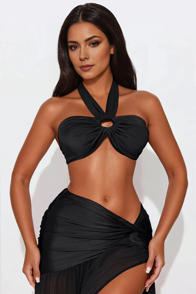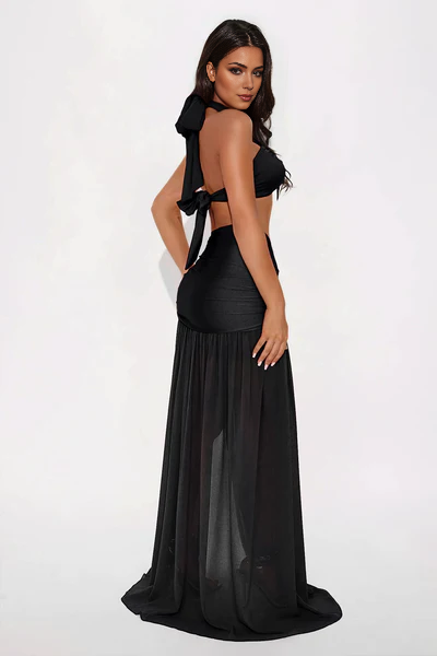 BirB Bloom Halter Slit Black Maxi Skirt Set